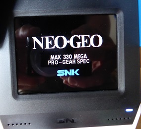 続いてNEOGEOのロゴマークが表示 カメラが反射して映っているのはキニスルナ