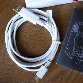 電源ケーブルは本体側USB(Cタイプ)反対側USB(Aタイプ)が付属しているが充電アダプターは無い