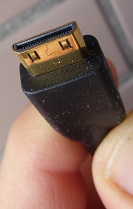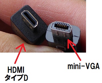 写真の右側はmini-VGA端子であり私が所有するノートパソコンにあるものでアナログVGAとして外部に出力する映像端子です。しかもそのパソコンにはHDMIタイプD端子もあるから余計に間違いそう。